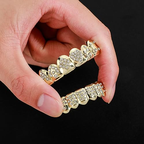 HOT ! TOPGRILLZ Gold Poker Grills for Your Teeth for Men & Women, 18K Gold Plated Brass, Heart, Unisex, Hip Hop Faux Diamond Grillz Teeth Jewelry, Party, Rapper Costume