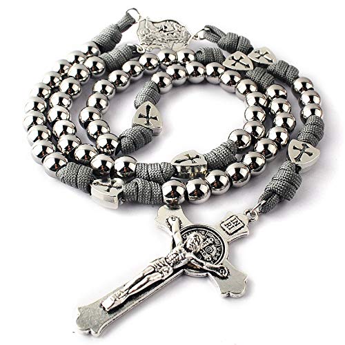 HanlinCC Large and Heavy Stainless Steel Beads Rugged Durable Paracord Rosary Necklace for Men with St.Michael Center Piece and St.Benedict Crucifix 6