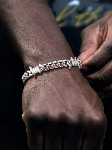 ChainsHouse Barbed Wire Bracelet, Cuban Link Chain Bracelet for Men, Stainless Steel Gothic Punk Thorns Hand Chain, Hip Hop Jewelry, 7mm/9 mm Width, 7"-8.3" Length, Send Gift Box 1