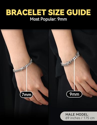 • Dimensions: The bracelet includes 4 thorn accessories; Thorn knot dimensions: 22.5mm*7.2mm*9.2mm; Cuban Chain Width: 9mm, Length: 7.08'' +2'' (18cm+5cm), Total weight is 38.4g.