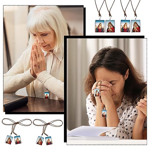 16 Pcs Catholic Scapular Necklace Metal Escapularios Catolicos Sacred Heart of Jesus with Our Lady Mt Carmel Catholic Scapular Gifts for Men Women Christian First Communion Confirmation 19" 6