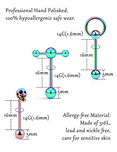 More information about 14G Silver/Rose-Gold/Rainbow Tongue Rings Piercing Jewelry for Women Men Work Surgical Steel Metal Tounge Barbell Acrylic Balls Set 29pcs