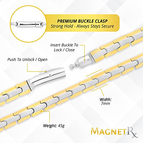 HOT ! MagnetRX Titanium Magnetic Necklace – Ultra Strength Magnetic Necklaces for Women & Men – Effective Titanium Necklace with 55 Magnets (Silver & Gold, 19.25 Inches)
