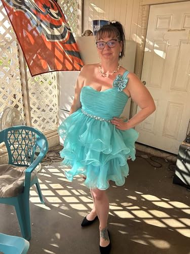 • Features : One Shoulder beaded Hoco dresses, puff v neck short prom dress, tiered short homecoming dress for teens, bow tied ball gown, A line pleated evning party formal dress lace up back, built in bra,fully show your charming body curve.