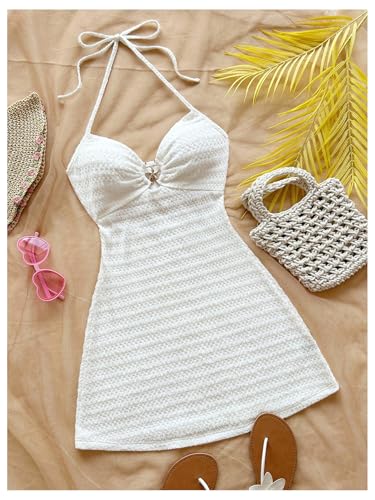 More information about MakeMeChic Women's Textured Halter Dress Metal Starfish Backless Cut Out Summer Mini Dresses