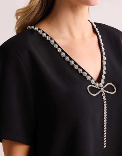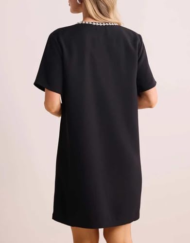 More information about Women's V Neck Shift Mini Dress Short Sleeve Bow Glitter Rhinetone Dress Sexy Party Cocktail Short Dress