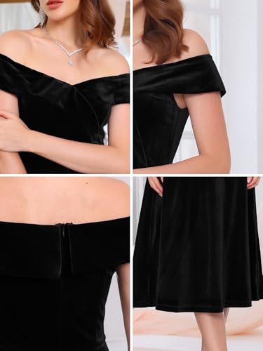 Women's Velvet Dress Off The Shoulder Vintage Cocktail Evening A-Line Dresses 4