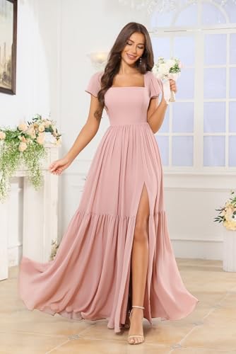 • Feature:modest bridesmaid dresses for women,bodycon wedding guest dresses with flutter sleeves,summer formal dresses with split,square neck,floor length,a line,ruched,open back,built in bra,lace up back,fully lined.