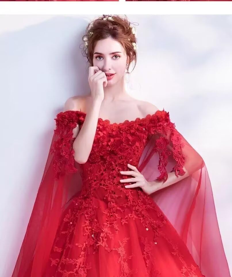 • This Women's Prom Party Dress uses soft tulle , beautiful 3D flowers and appliques are decorated on this Gothic Ball Gown With Cape. The back of this Off Shoulder Quinceanera Dress has a lace up design , making it easy for you to adjust the tightness of the gothic wedding prom dress.