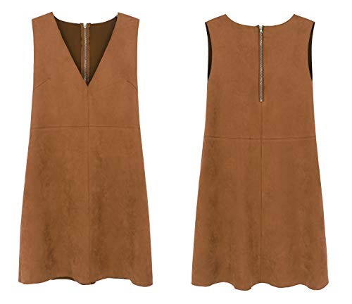 R.Vivimos Women's Fall Faux Suede Vintage V Neck Sleeveless Overall Dress with Pockets 5
