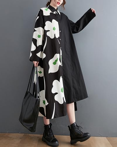 • 【Design】: Exuding elegance, this dress features a chic black and white contrast patchwork design. The unique floral print adds a touch of flair to your wardrobe. The button-down front, polo collar, and irregular hem enhance the dress's appeal.