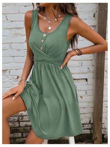 SweatyRocks Women's Twist Button Front A Line Short Dress Scoop Neck Sleeveless Flared Dresses 1