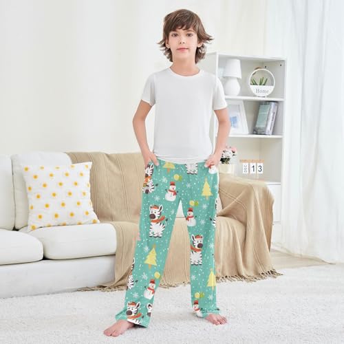 Zebra Xmas Tree Snowman Boys Long Pants Soft Trousers Elastic Waist Kids Lounge Bottoms with Pockets S-XL 4