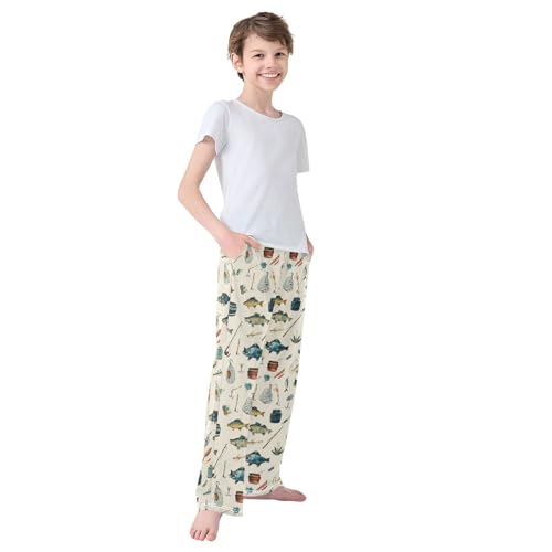 Pattern Of Fishing Themed Lounge Pajama Pants Soft PJ Bottoms for Sleepwear Ages 6-14 Years 1