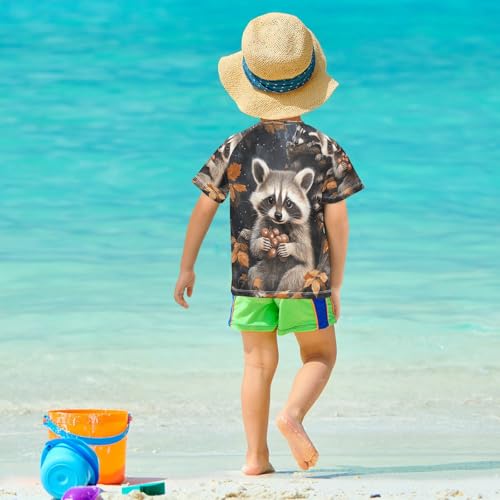Kids Swimsuit Watercolor Raccoon Cartoon Sunscreen T-Shirts Swimwear Sets UPF 50+ 5