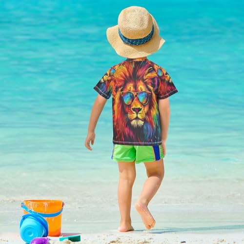 CaTaKu Colorful Lion Boys Rash Guard Swim Shirts Toddler Quick Dry UPF 50+ Rashguard Short Sleeve 3-12T 4