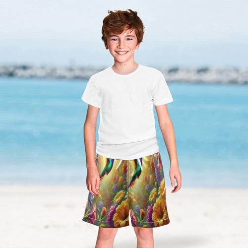 Flowers Hummingbird Boys Swim Trunks Quick Dry Toddler Swimsuit Boy Board Shorts Swimwear Bathing Suits 2T 6