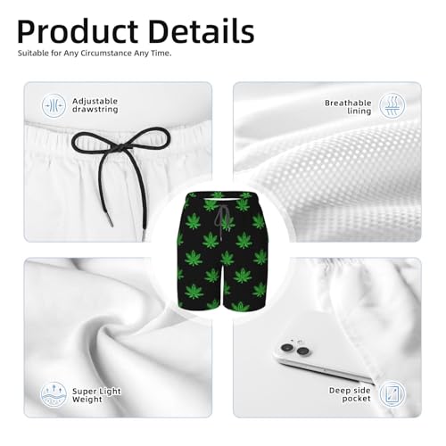 More information about Boys Swim Trunks Neon Cannabis-Leaf Glowing Icons Black Kids Swim Shorts Quick Dry Beach Board Pocket