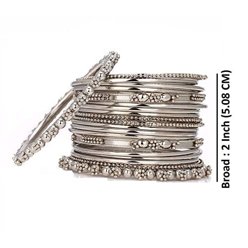 • Bangle Size (Indian) : 2-6, US Size : M (Inner Diameter- 2.37 inch, Inner Circumference - 7.46 inch), Set Content- 40 pieces. Indian oxidized bangle set for women, Metal: Alloy.