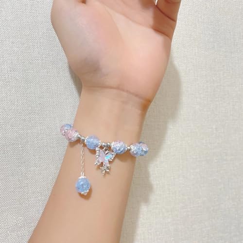 SUPKID 10MM Beaded Bracelets - Butterfly Pendant Beaded Stretch Bracelets - Matching Bracelets for 3 Beautiful Pink Blue Green - Design for Teenagers and Women 7