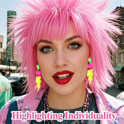 • ⚡ Dual-Era Statement: Seamlessly transition between 80s accessories for women and 90s retro looks; versatile drop earrings complement any neon outfit or vintage ensemble