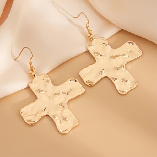 • Bold & Eye-Catching Design: Chunky gold big hammered cross drop dangle earrings with a thick silver cross hook, blending vintage faith vibes with a trendy, statement-making style