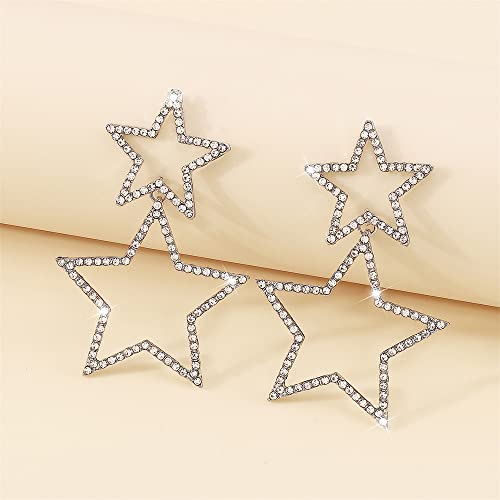 HOT ! Rhinestone Big Star Dangle Earrings for Women Girls Hypoallergenic Crystal Long Tassel Stars Charms Drop Dangling Stud Fashion Lightweight Festival Christmas Birthday Party Jewelry Dainty Gifts for Friends Fans