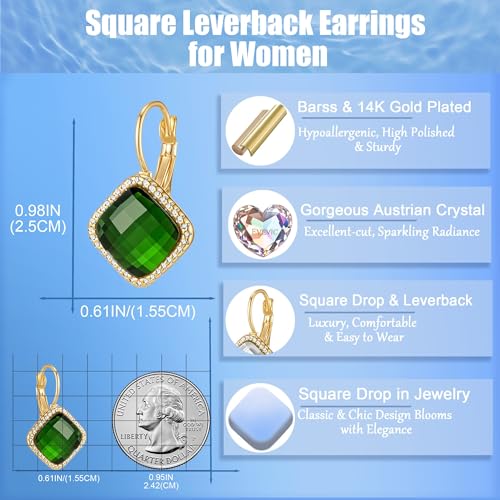 EVEVIC Austrian Crystal Halo Square Dangle Drop Leverback Earrings for Women Trendy 14K Gold Plated Jewelry Gifts for Anniversary 7