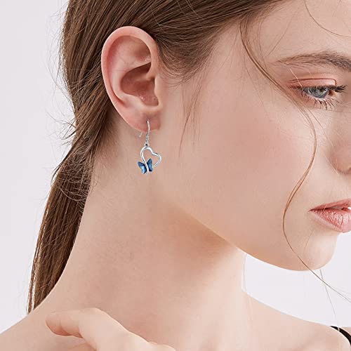 Butterfly Earrings 925 Sterling Silver Heart Butterfly Dangle Drop Earrings with Crystal Moonstone/Opal Jewelry Gifts for Women Girls 6