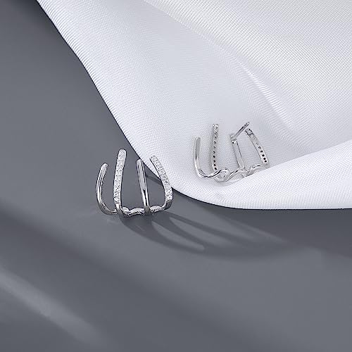 • MATERIAL: These claw huggie earrings look like 4 silver/gold hoops. They are made of real 925 sterling silver with S925 stamped, not only the earrings post, but the whole earrings are made of 925 sterling silver, which really makes the whole earrings nickel free, lead-free, hypoallergenic, and don't cause any allergic reaction and don’t turn your skin green. These earrings are suitable for adult or teenager aged over 12 years old.