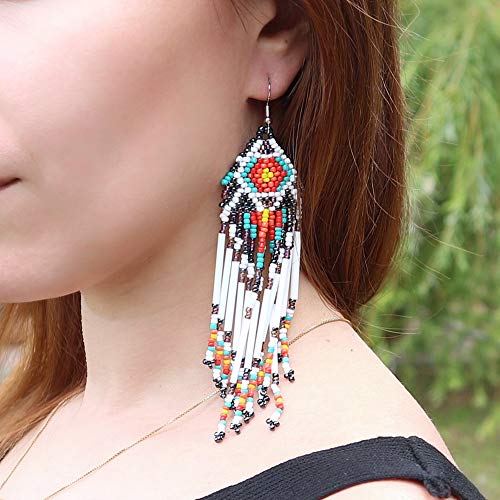 Coeufuedy Long Beaded Tassel Earrings Bohemian Fringe Drop Handmade Seed Bead Statement Earring for Women Girls 6