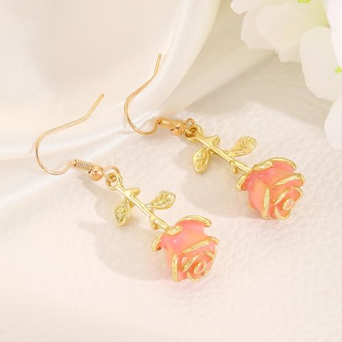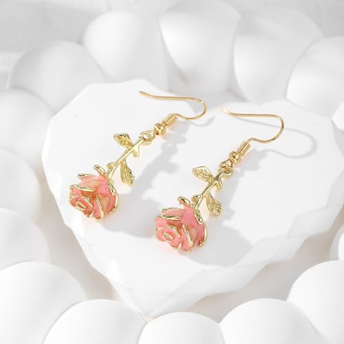 Gold Rose Earrings for Women - Vintage Dangle Flower Earrings for Valentine's Day - Enamel Drop Jewelry Costume Accessories 5
