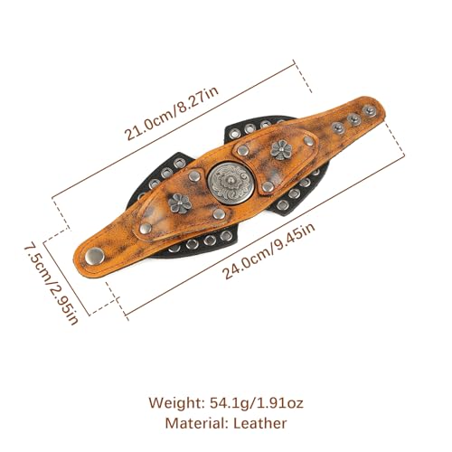 HZMAN Leather Bracelets Retro Men's Leather Cuff Bracelet Adjustable Wide Wristband Bracelet Jewelry Gift 4