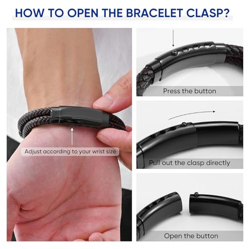 • Adjustable & Easy to Wear: With a 7.5" + 2" adjustable design, this men's leather bracelet fits most wrists effortlessly. The secure clasp keeps it in place all day, blending style and classic charm to bring you protection and good fortune.