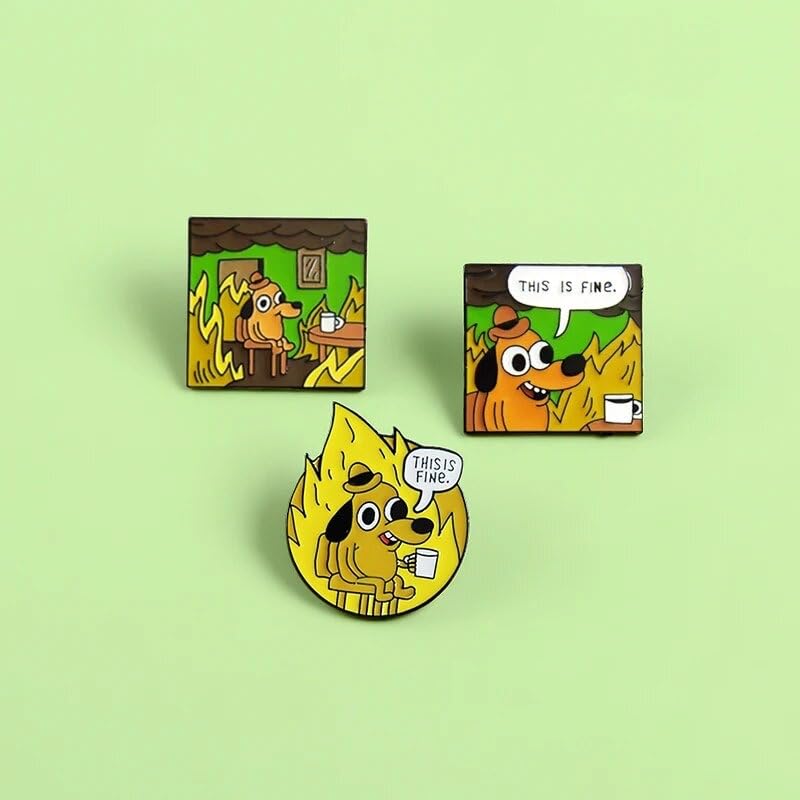 • Premium metal alloy pin featuring the "this is fine" dog meme.