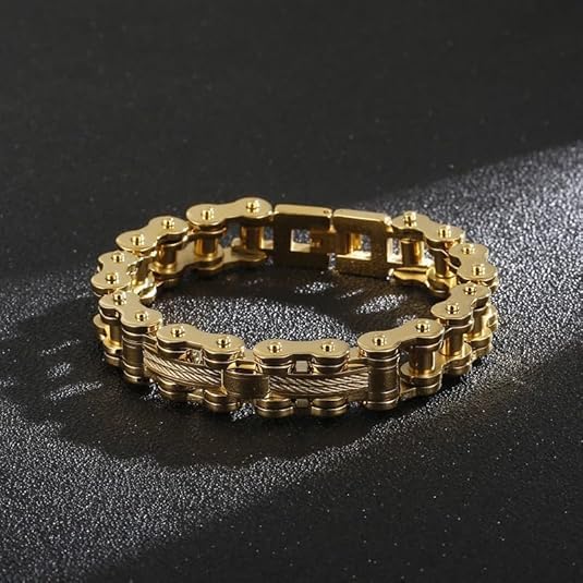 More information about 18K pure gold bracelet, men's bracelet bicycle chain, Bicycle chain,exquisite Cuban chain, hip-hop men's bracelet fashion jewelry gift