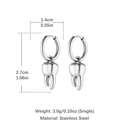 HZMAN Tooth Dangle Drop Earring for Men Women Retro Stainless Steel Small Lightweight Hinged Huggie Hoop Earring Jewelry Gift 6
