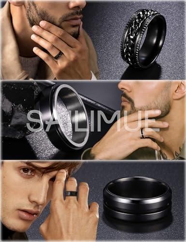 SAILIMUE 6 Pcs 6/8 MM Black Spinner Rings for Men Women Stainless Steel Fidget Ring Anxiety Stress Relieving Cool Chain Fashion Ring Set Wedding Promise Band Rings Size 7-13 1