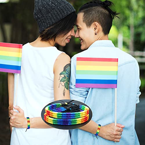 Rainbow LGBT Pride Bracelet for Lesbian Gay Bisexual Adjustable LGBTQ Pride Bracelets Handmade Braided Wristband Pride Month Friendship Bracelet Gifts for Men Women Bulk 6