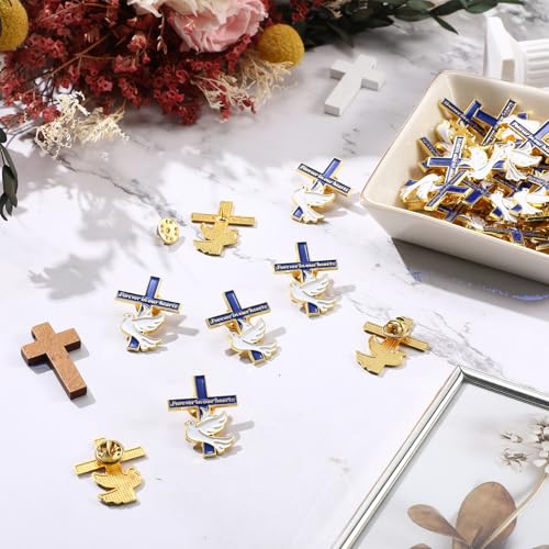 HOT ! Misdary 25 Pcs Funeral Memorial Pins Christian Dove Cross Forever in Our Hearts Lapel Pin for Mourning Remembrance Day