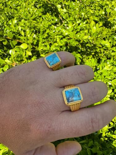 Southwest Drip Ring – 14k Gold Vermeil over 925 Silver – Genuine Blue Turquoise Stone | Handmade Southwestern Style Men's Ring 5