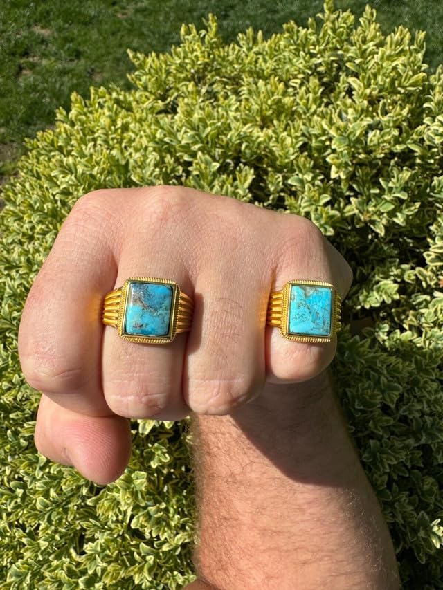 Southwest Drip Ring – 14k Gold Vermeil over 925 Silver – Genuine Blue Turquoise Stone | Handmade Southwestern Style Men's Ring 4