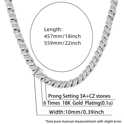 ICEDIAMOND 10mm Gold Plated Creative Retro Helix Cables Design Rope Chain Necklace, Iced Out Bling CZ Lab Diamond Hip Hop Charm Jewelry for Men 7
