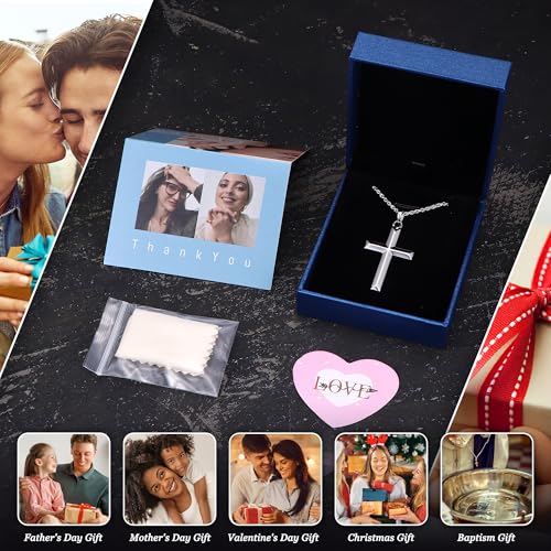 • Perfect Gift for Him or Her - A classic unisex cross chain with modern elegance for those who value beautiful cross necklace jewelry. This timeless essential is the perfect gift idea for husband, wife, son, daughter, mom, dad, brother, sister, boyfriend, girlfriend, best friend or for you. Give someone special luxurious fine jewelry to wear from day to night with style—Cross Necklace for Men Women