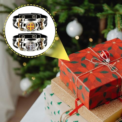 • Uniqque Design:This SAN Benito and Saint Benedict Cross bracelet is a unique gift for men, made of high-quality black faux leather and comfortable to wear.The bracelet has a lot of exquisite details, the use of luminous design, during the day to absorb sufficient sunlight and light, the medal will glow in the dark,In this way you will also have the strong protection and guidance of Saint Benedict at night.; The medal has a 360 rotation design, which allows you to easily adjust the Angle you like