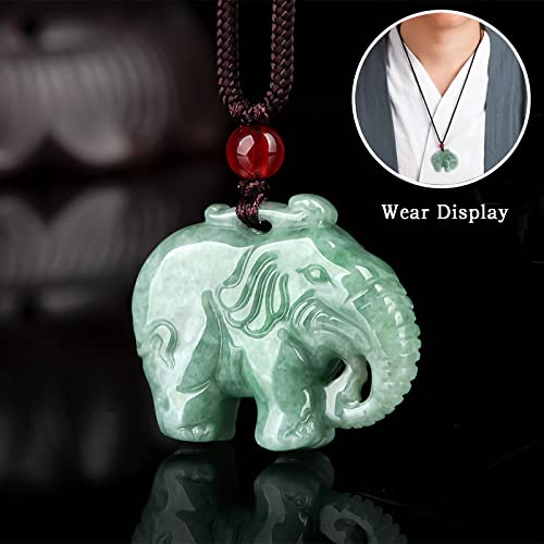 HOT ! Hand-carved Elephant Necklace Natural Green Jade Pendant Necklace for Women Men, Fashion Rope Chain Good Luck Protection Amulet Jewelry Gifts Charm Necklace for Friends