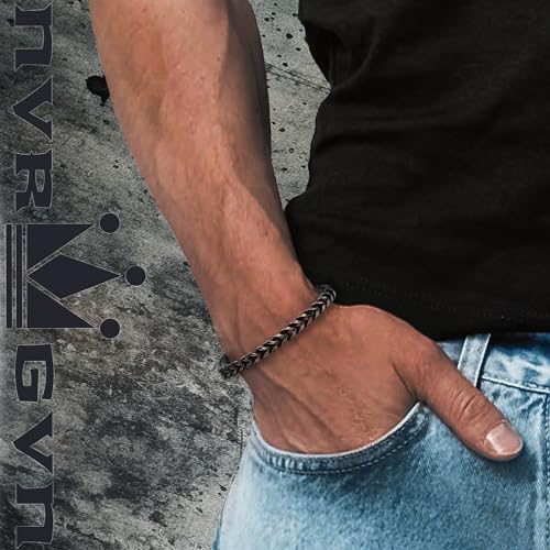• Unmatched Durability and Versatile Style: NVR GVN’s men's bracelet, made from the strongest stainless steel, is nearly unbreakable. This vintage dark metal chain jewelry enhances men's fashion and boost confidence. Ideal gift for boyfriend, husband, or dad.