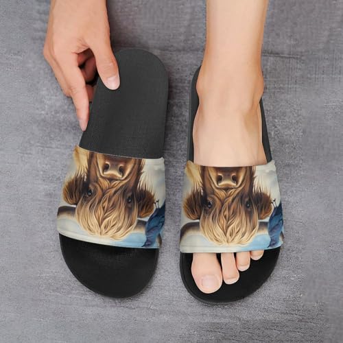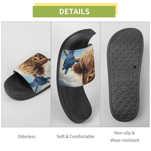 HOT ! Highland Cow Blue Jay Bird Non Slip Slides Sandals for Women Men Quick Drying Shower Shoes for Bathroom Pool Beach