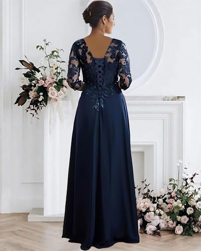 Lace Applique Mother of The Bride Dresses for Wedding 3/4 Sleeve Chiffon Mother of The Groom Formal Evening Gown 3