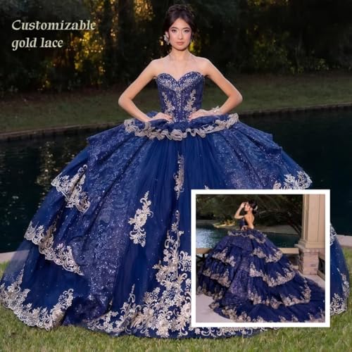 More information about XYAYE Glitter Tulle Quinceanera Dresses with Sleeves Lace Layered Vestidos de Quinceañera Puffy Beaded Strapless 16 Dresses